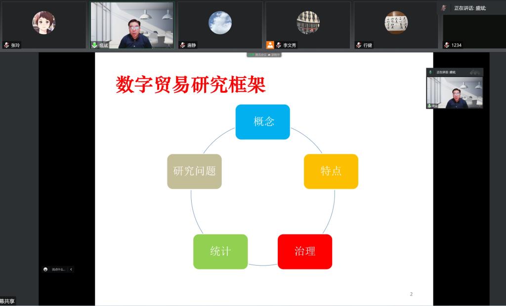 最后,盛斌教授介绍了十个数字贸易研究问题,并回答了师生的提问。本次报告基于数字经济大背景,详细分析了数字贸易演变的历史逻辑和现实逻辑,为师生提供了分析国际贸易问题的新思路,拓宽了相关专业师生的专业视野。