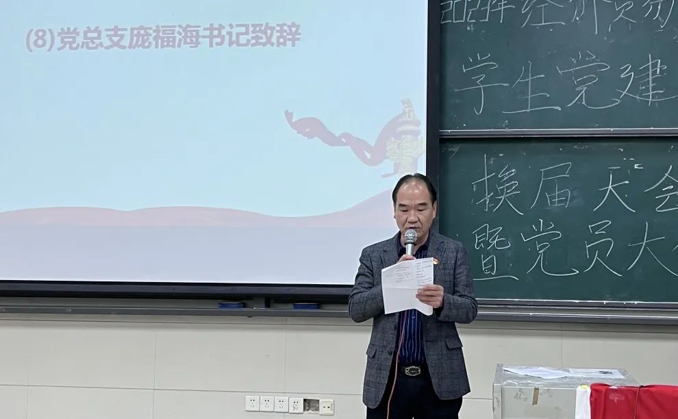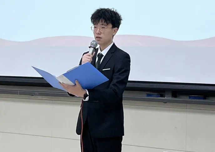 接下来,新任学生党建中心常务副书记助理温智豪同学发表就职演讲,他对党建接下来的发展提出设想,表示党建的发展要紧跟时代潮流,坚持守正创新,党建工作与时俱进;传承党建精神,勇担奋斗事,加强内部沟通;维持深度合作,汇聚党建力量。