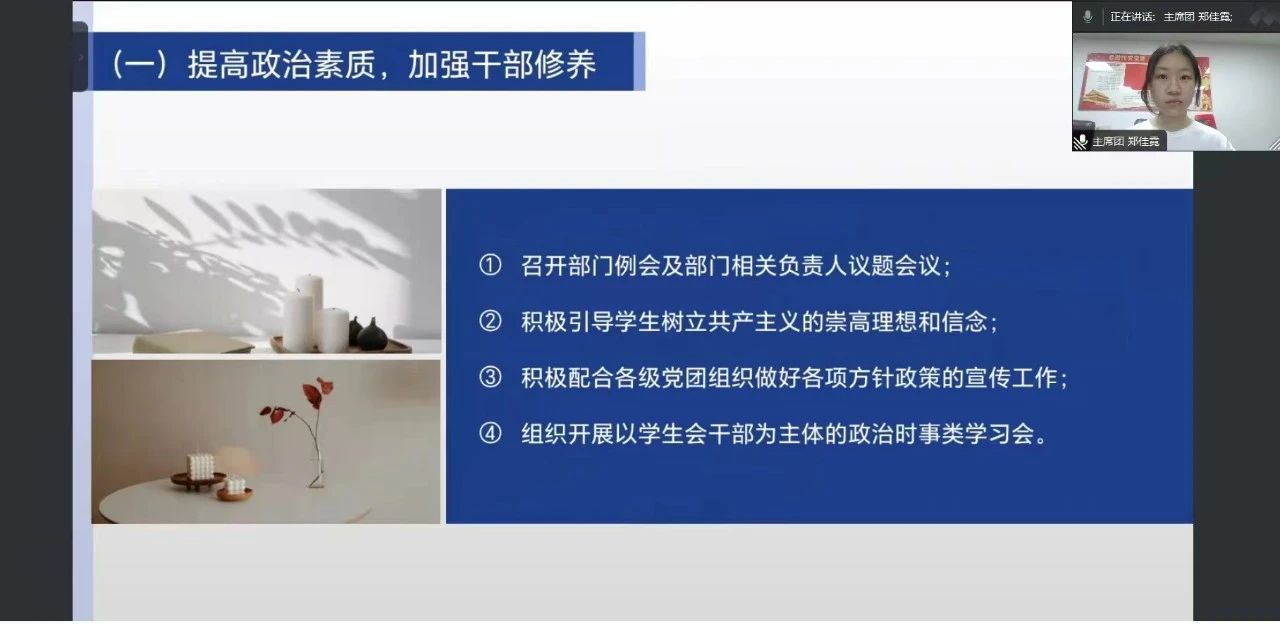 此次会议的召开,旨在深化各位同学的政治理论学习,持续提升学生的政治理论素养,同时在接下来的主席团及各部门分享的一年来对本部工作评述和经验得失中,促进各部门吸取经验,以便未来能更顺利地开展学生会的工作。