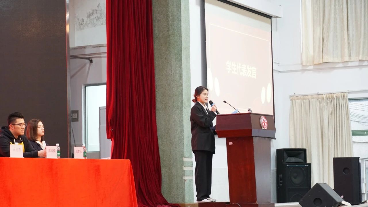 随后,优秀学生代表沈启旋同学发表了获奖感言,分享自己的学习经验和成长经历,并向全体学生发出了诚信考试的倡议。