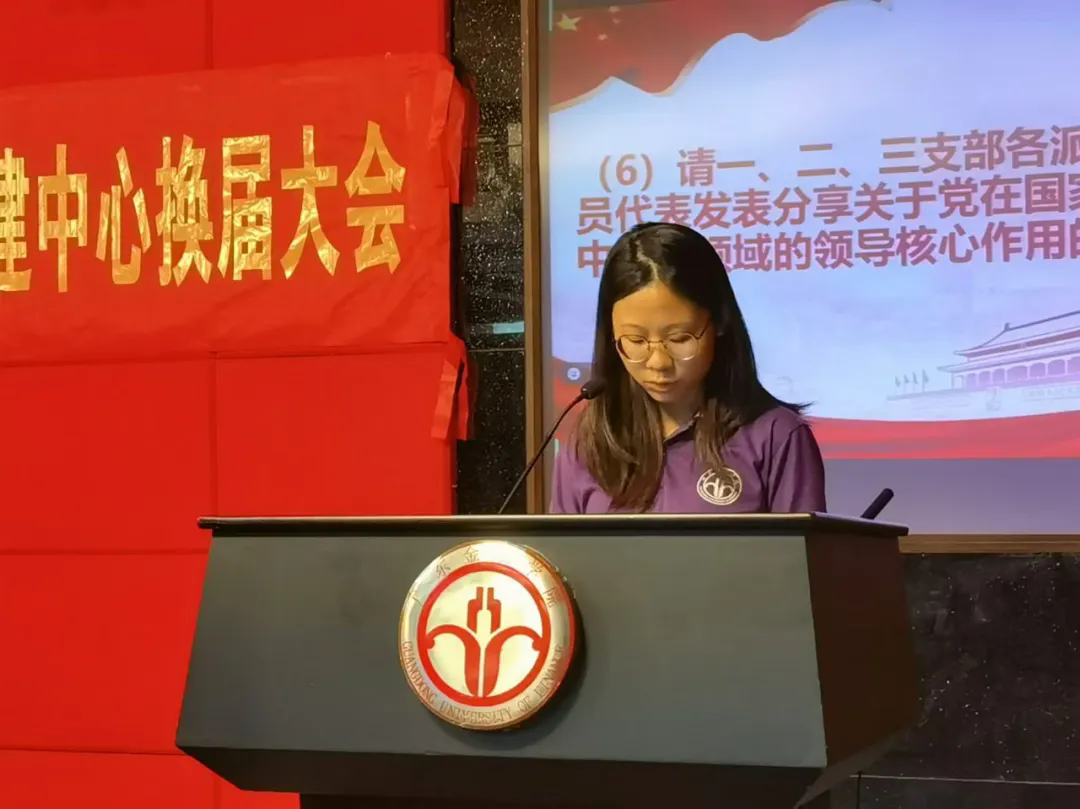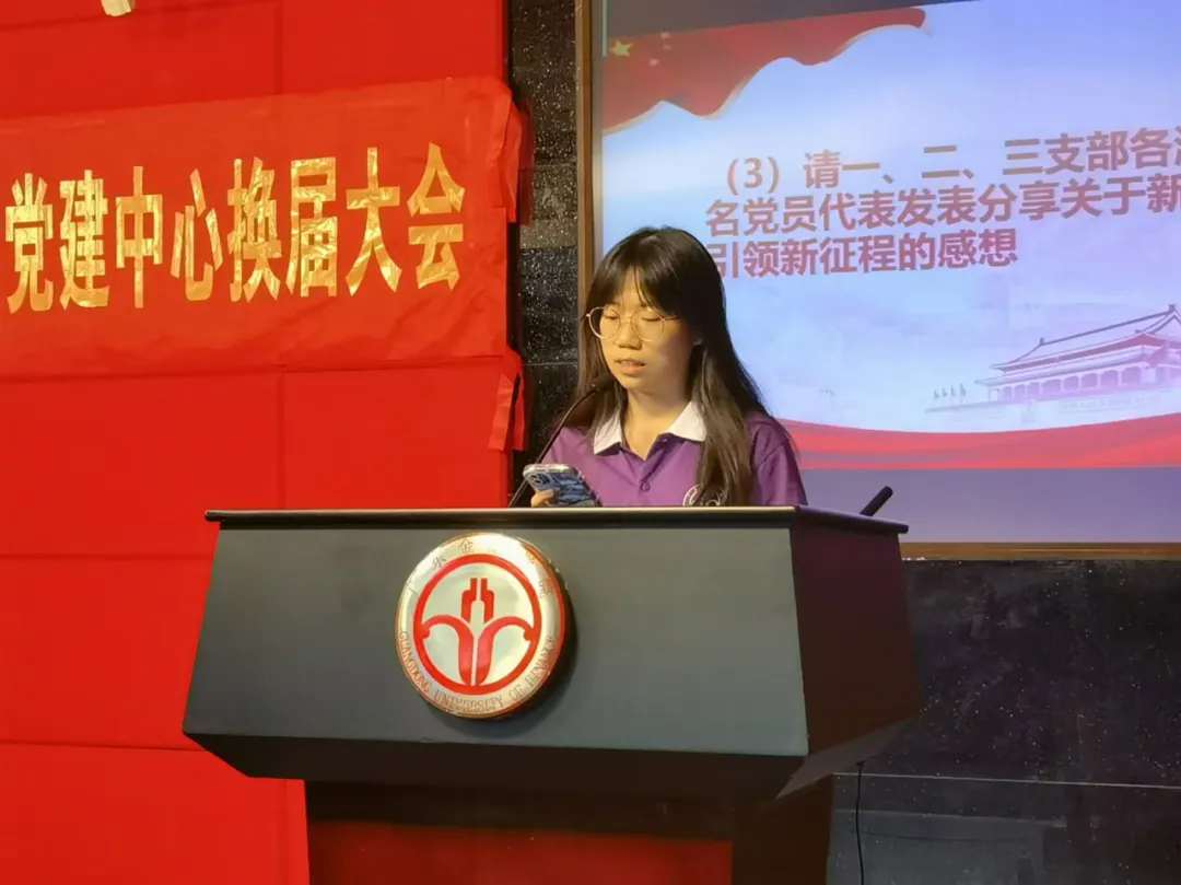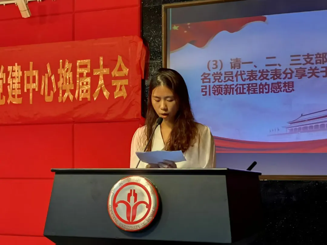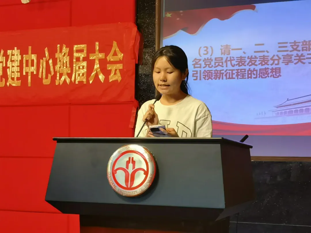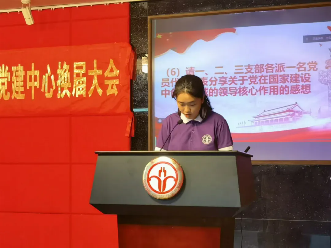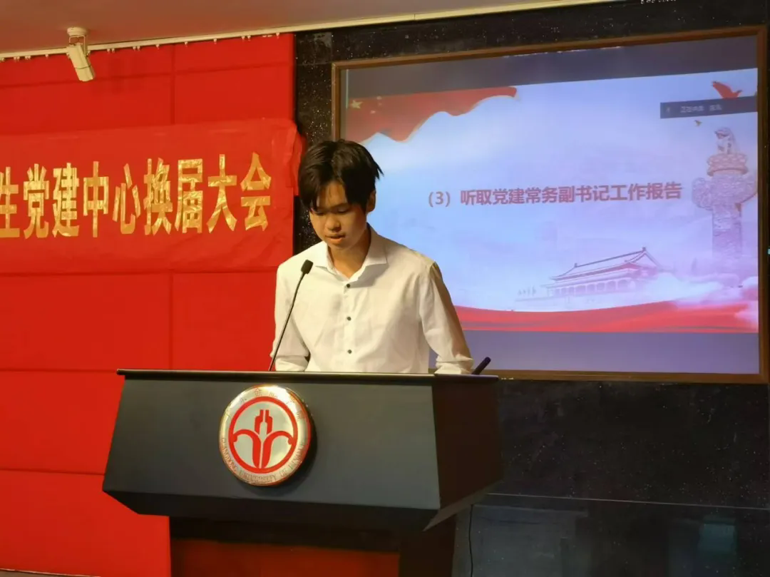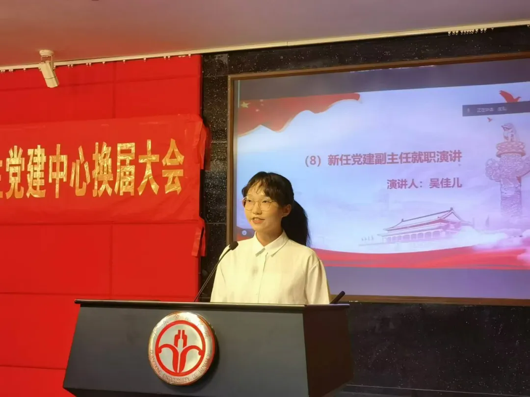 换届大会上,2023-2024学年学生党建中心常务副书记严宇恒代表即将卸任的学生干部进行任期汇报和工作总结,新任学生党建中心主任林金平和副主任吴佳儿同学发表就职演讲。吴佳儿同学表示,党建中心将继续发扬优良传统,为党和群众搭建桥梁,紧跟时代潮流开展工作创新;各部门要加强沟通联系,维持深度合作,汇聚党建力量;全体干部要带头开展理论学习,提升能力,不断提高思想政治素养,以实际行动践行使命担当。