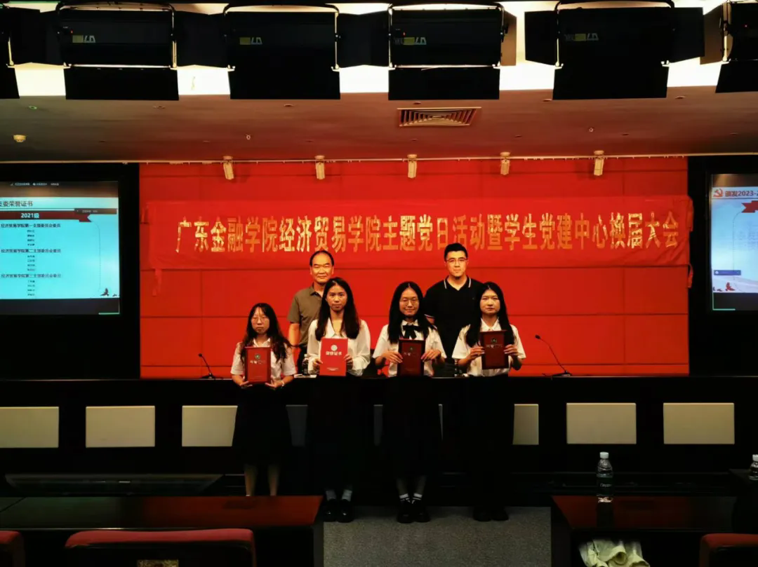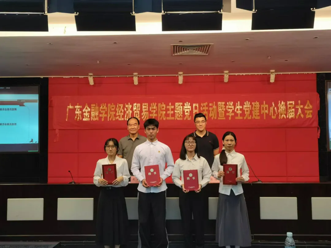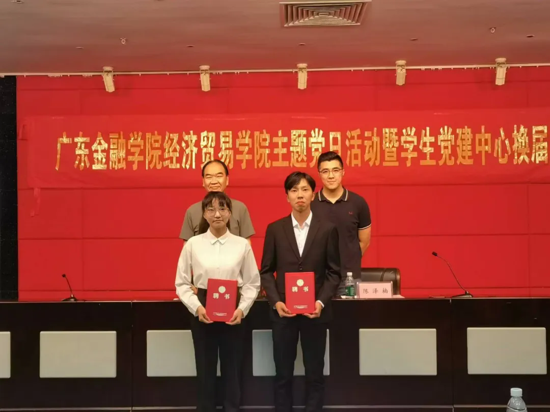 在热烈的掌声中,庞福海书记和陈泽楠老师为卸任的学生干部颁发荣誉证书、为接任的学生干部发放聘书,并合影留念。至此,学生党建中心换届大会圆满结束。