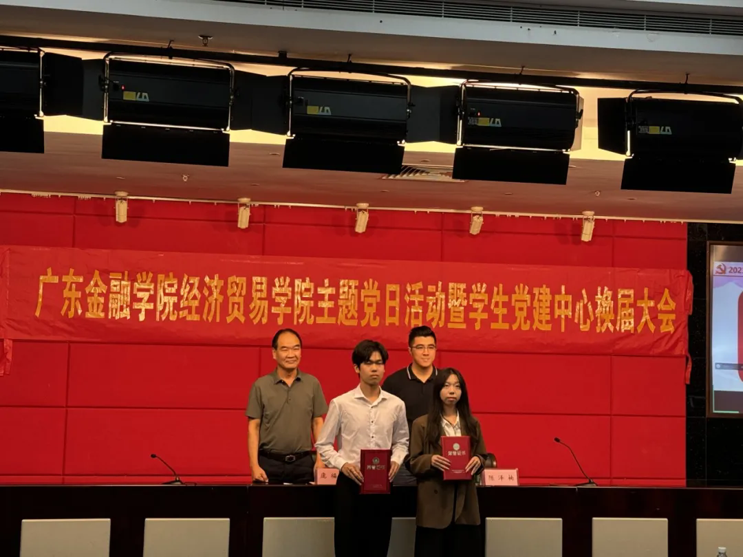 紧接着,大会进行第二项议程——为学生党支部委员颁发荣誉证书和聘书。学院党委书记庞福海和陈泽楠老师为2021级学生党支部委员颁发荣誉证书,为2022级学生党支部委员助理颁发聘书。