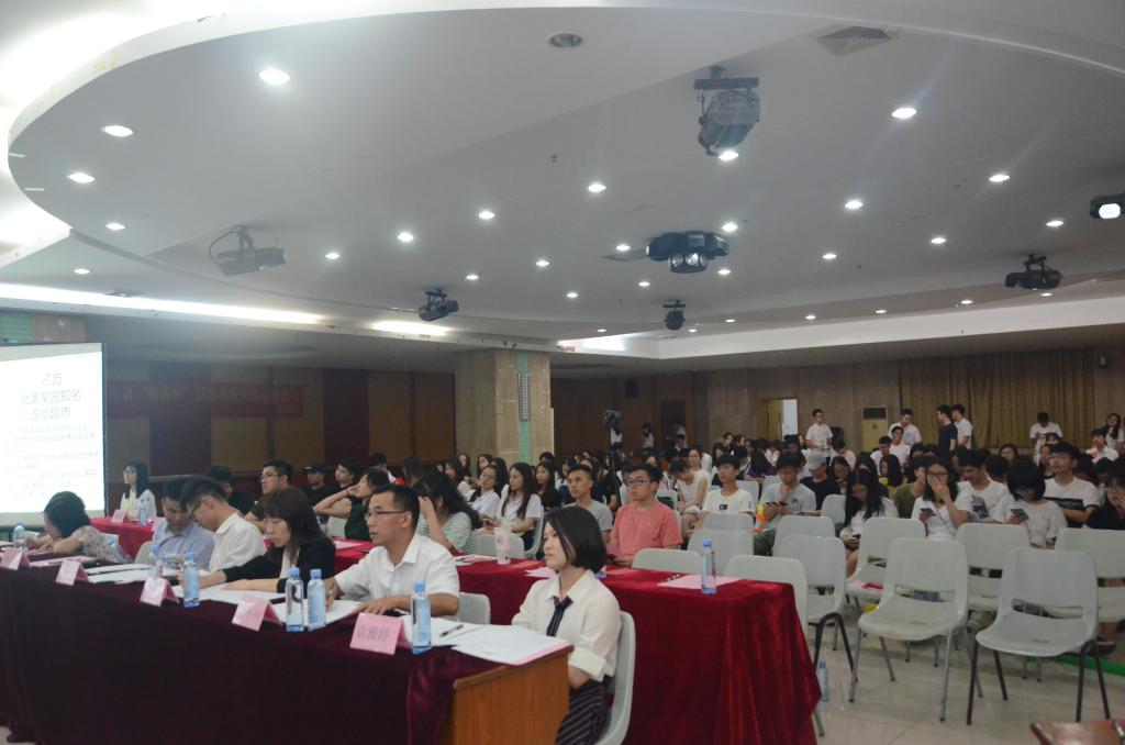 比赛开始前,主持人声情并茂地开场并详尽地介绍了决赛的评分规则。在欣赏完选手们初赛及复赛的精彩视频和团队风采展示后,决赛正式拉开了序幕。首先进行的是知识竞答环节。六支队伍的代表们自信地站在舞台中央,专注地听题和看题,从容地作答,他们扎实的国际商贸知识和良好的精神风貌由此可见一斑!而后短暂而有趣的观众互动环节给本次决赛增添了趣味性。紧接着是本次决赛的高潮部分,即商务谈判和评委提问点评。随着参赛选手逐步进入比赛状态,各个选手发挥地更加出色,商务谈判也愈加激烈,评委老师根据各参赛队伍及各选手的精神风貌、现场表达和协调配合情况等进行提问、点评及评分,由工作人员对每支队伍的分数进行最后的统计,按分数从高到低分别评出团队一等奖一支队伍,二等奖两支队伍,三等奖三支队伍,并根据个人表现情况及具体分数评出最佳辩手三名。