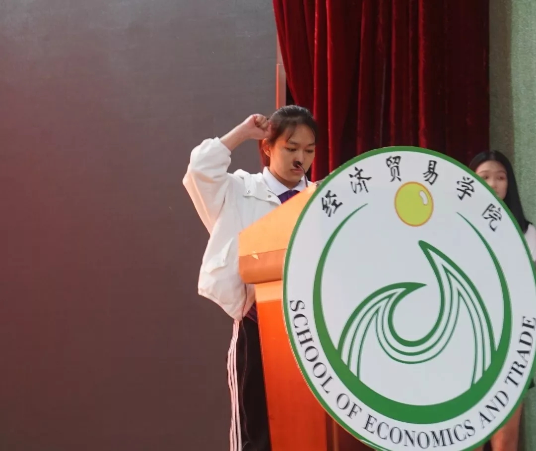 随后学生代表吴俊婷带领全体同学宣读誓词,同学们铿锵有力的宣誓声响彻了整个礼堂。