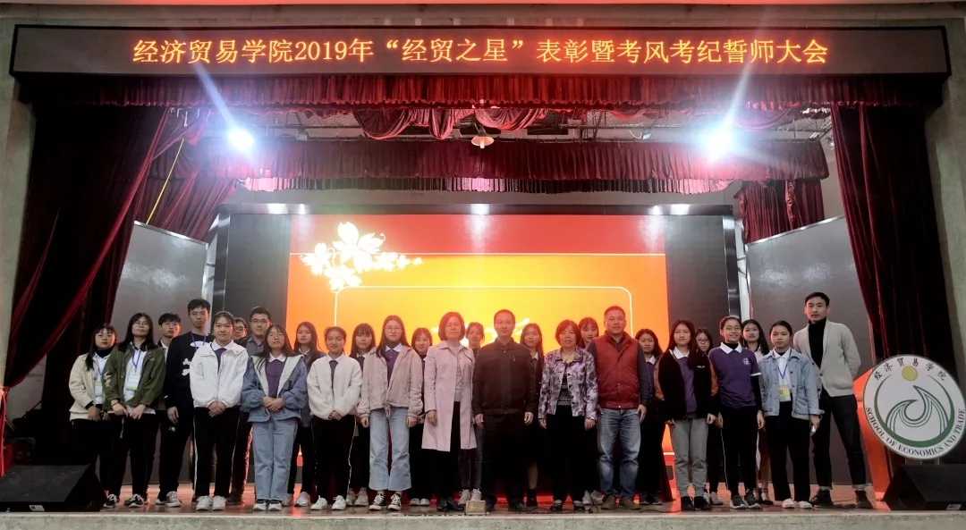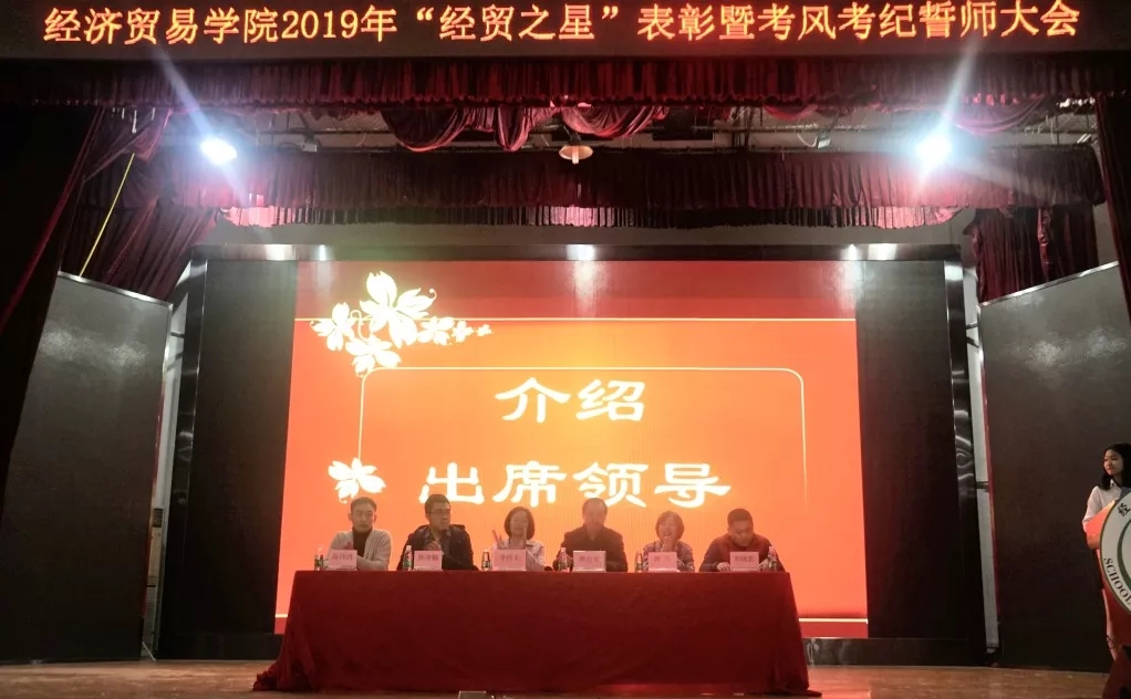 2019年12月19日19:30,十大买球的正规网站“经贸之星”表彰暨考风考纪誓师大会在南苑大礼堂顺利举行。十大买球的正规网站卿前龙院长,党总支李玲玉书记,党总支钟兰副书记,曾晓思老师,陈泽楠老师,陈玮鸿老师出席了本次大会。