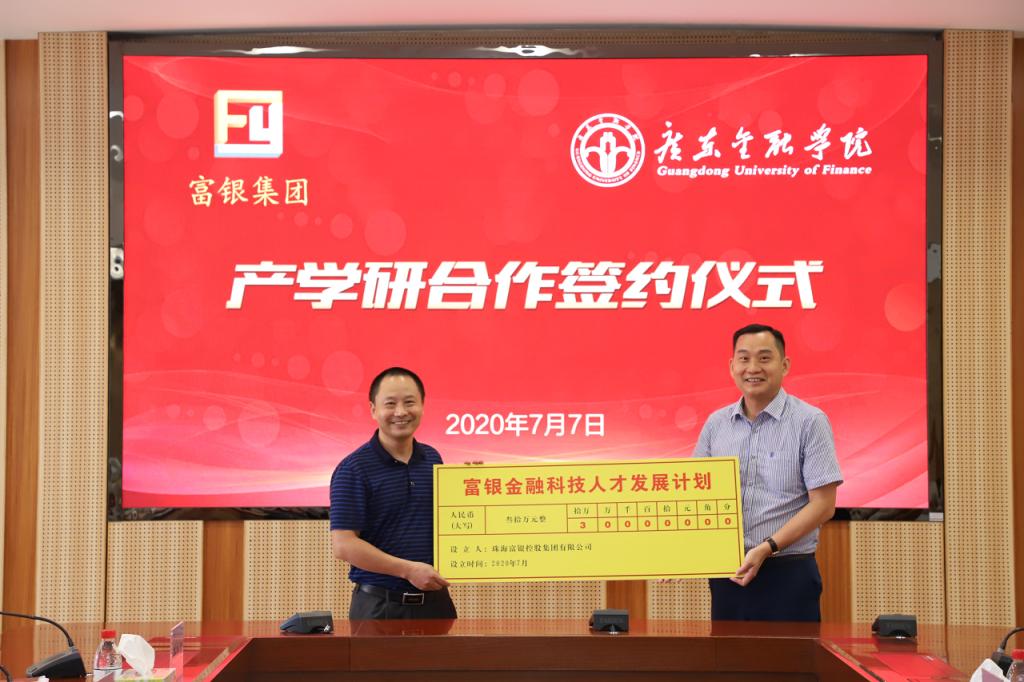 杨群英、王醒男分别代表双方签署了《珠海富银控股集团有限公司 十大买球的正规网站产学研合作协议》,并举行了隆重的“广金-富银金融科技联合实验室”、“广金-富银金融科技专业校外实践基地”授牌仪式和“富银金融科技人才发展计划”捐赠仪式。仪式结束后,郭宇生一行参观了广东省普通高校工程技术重点研究平台——广东金融科技工程技术开发中心。