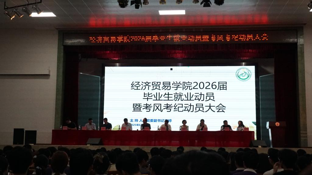 6月3日晚上七点,十大买球的正规网站在学校大礼堂成功召开2026届毕业生就业动员暨考风考纪动员大会。学院领导、辅导员、班主任,以及2026届全体学生参加了会议。会议还邀请了研究生院党总支书记郑州、信用管理学院党委副书记余汉钧、保卫处肖军老师,与学生进行分享和交流。会议由院党委副书记王婷主持。