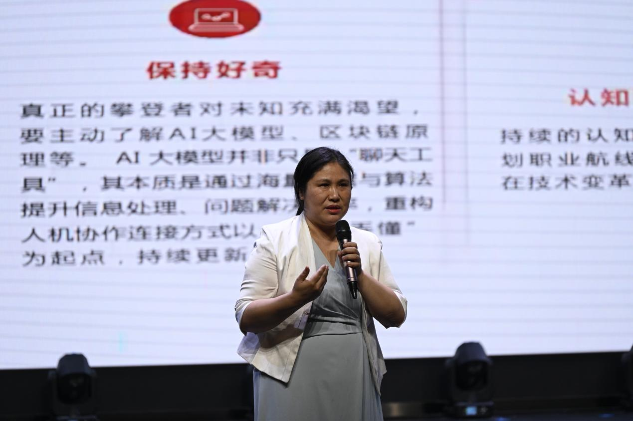 院长李文秀教授随后作《拥抱技术变革,做新时代的坚定攀登者》主题讲座。李院长通过梳理历次技术革命的发展脉络,深入剖析了当前技术变革带来的机遇与挑战。她指出,新时代大学生应当培养三大核心能力:认知力——把握技术发展趋势的洞察能力;适应力——应对产业变革的快速响应能力;价值力——实现技术向善的价值判断能力。李院长勉励同学们在日常学习中注重积累,在专业领域深耕细作,以扎实的学识储备和务实的治学态度,在技术变革浪潮中勇攀高峰。