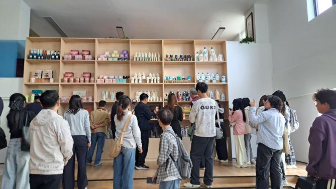 随后,师生走进生本新营销公司,公司自2011年成立以来,立足互联网,紧跟新的营销趋势及AI数智化应用,依托全域电商平台及内容平台,整合供应链,搭建全域电商店铺矩阵+全域账号矩阵的营销生态,进行产品销售和内容种草的双向运营。经10多年发展,具备平台电商运营、私域运营、直播、短视频运营、内容运营等全领域运营能力,旗下产品有罗曼诺、黛陌、艾诗等洗护产品。参观过程中,同学们分批走进企业的直播工作区、短视频创作中心与内容运营部门,实地观摩了从产品策划、内容制作到平台分发的全链路运营流程,深化了对现代营销体系运作逻辑的认知。