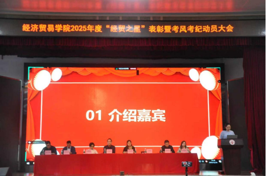 大会在热烈的掌声中拉开序幕。首先由李文秀院长宣读《2025年“经贸之星”表彰决定》。随后,与会领导依次为先进个人和先进集体获奖代表进行颁奖。本次“经贸之星”评选活动设学习标兵奖、学习进步奖、英语六级先进个人奖、优秀学生干部、个人特别贡献奖、团体特别贡献奖、优秀班集体和五好宿舍共8个奖项。