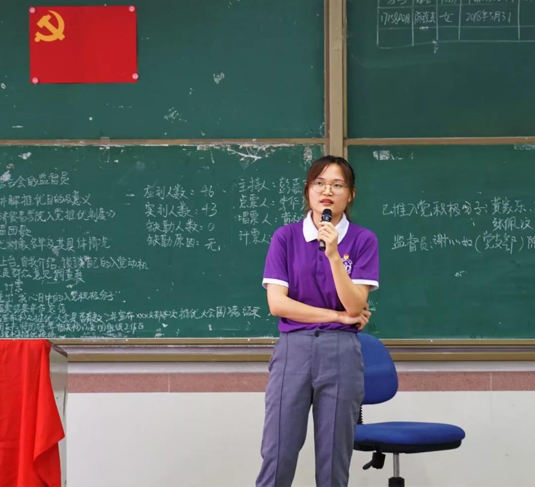 紧接着,在对推优分子进行简单介绍后,伴随着热烈的掌声,大会进入了精彩阶段即推优分子自荐环节。他们依次上台进行自我介绍,阐述入党动机。随后还用歌唱、朗诵、演讲等方式述说了一路走来的心路成长经历,表达了自己内心深处对党组织的敬意,为人民献身的热情。