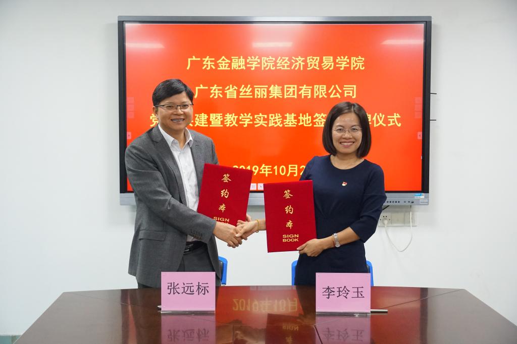 随后,播放了广东省丝丽集团有限公司的宣传资料短片,公司党委书记兼董事长张远标介绍了公司发展历程、组织架构,着重介绍了“调结构、促转型”工作的开展情况。并简要介绍了公司的党建工作,希望双方在产学研合作、学生实习实践等方面开展长期的深度合作。公司党委副书记兼总经理蔡如君表示希望通过此次签约,在传统外贸转型升级的大背景下,双方可以在科技金融等领域开展多方面的合作。