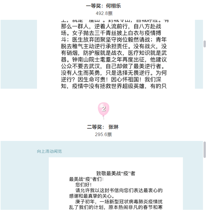 在这次书信征集活动中,我们充分感受到流淌在同学们笔下的对每位抗“疫”者的无限感激之情,也深有启发于同学们就疫情展开的透过现象看本质的深度思考,战“疫”者用光照亮我们,相信同学们字里行间的敬意和祝福也可以给他们带来温暖!走反方向的路,会一场万物复苏。现在国内疫情能够得到有效控制,离不开每一位战“疫”者的无私奉献,让我们再一次向最美战“疫”者致以最崇高的敬意!