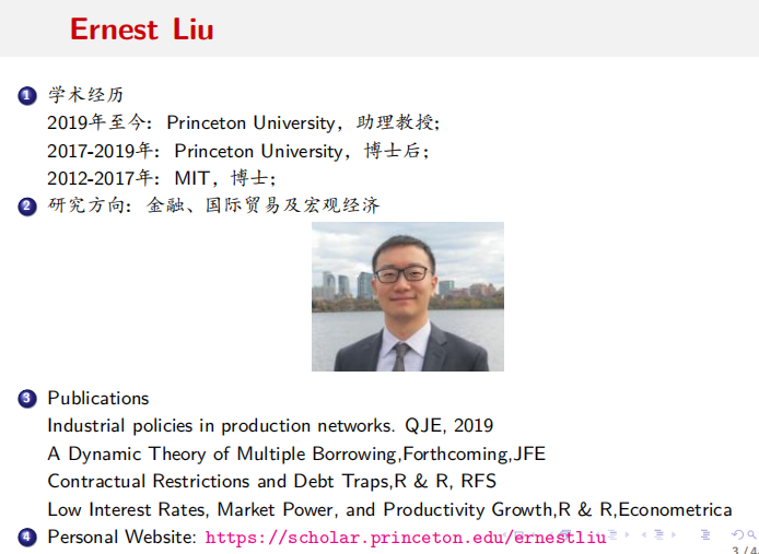 周玲玲博士首先对Ernest Liu及其研究领域进行了简单介绍。接着按照研究背景、动机、模型、理论、应用和结论几个部分对“Industrial Policies in Production Networks”进行了简要介绍。