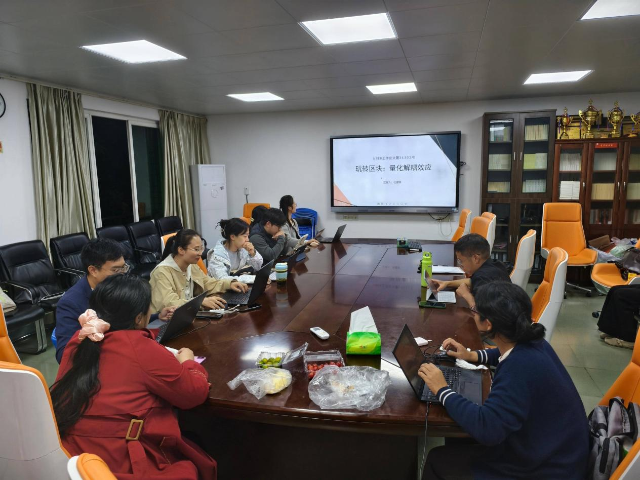 汇报结束后,指导教师团队围绕研究原文展开点评,肯定该论文对后续研究的三大价值:一是“自适应贸易壁垒分组”为逆全球化研究提供了新方法论;二是“集团错配”的发现打破了传统认知,具有现实启示意义;三是多维度稳健性检验确保了结论的可信度。同时,教师团队结合研究细节,与研究生探讨“未结盟国家收入增幅较高的深层经济机制”“地缘政治对贸易影响的量化衡量方法”等问题,确保讨论紧扣研究核心,不偏离原文逻辑。参会同学围绕“自适应贸易壁垒的具体参数设定”“贸易成本拟合度与传统方法的偏差原因”等原文相关话题提问,汇报者结合模型推导过程、数据处理逻辑逐一回应,现场学术氛围严谨务实。